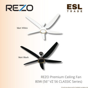 REZO Premium Ceiling Fan 56″ 80W VZ56 Classic Series with Remote Control Excellent Classic 5 Blade Design for Maximum Airflow