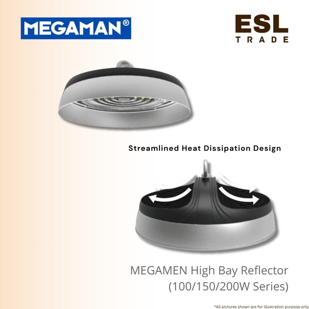 Engineered by MEGAMAN®, a leading German LED Brand since 1994, this HIGH BAY reflector is crafted to meet the rigorous demands of warehouse, workshop, and factory environments.