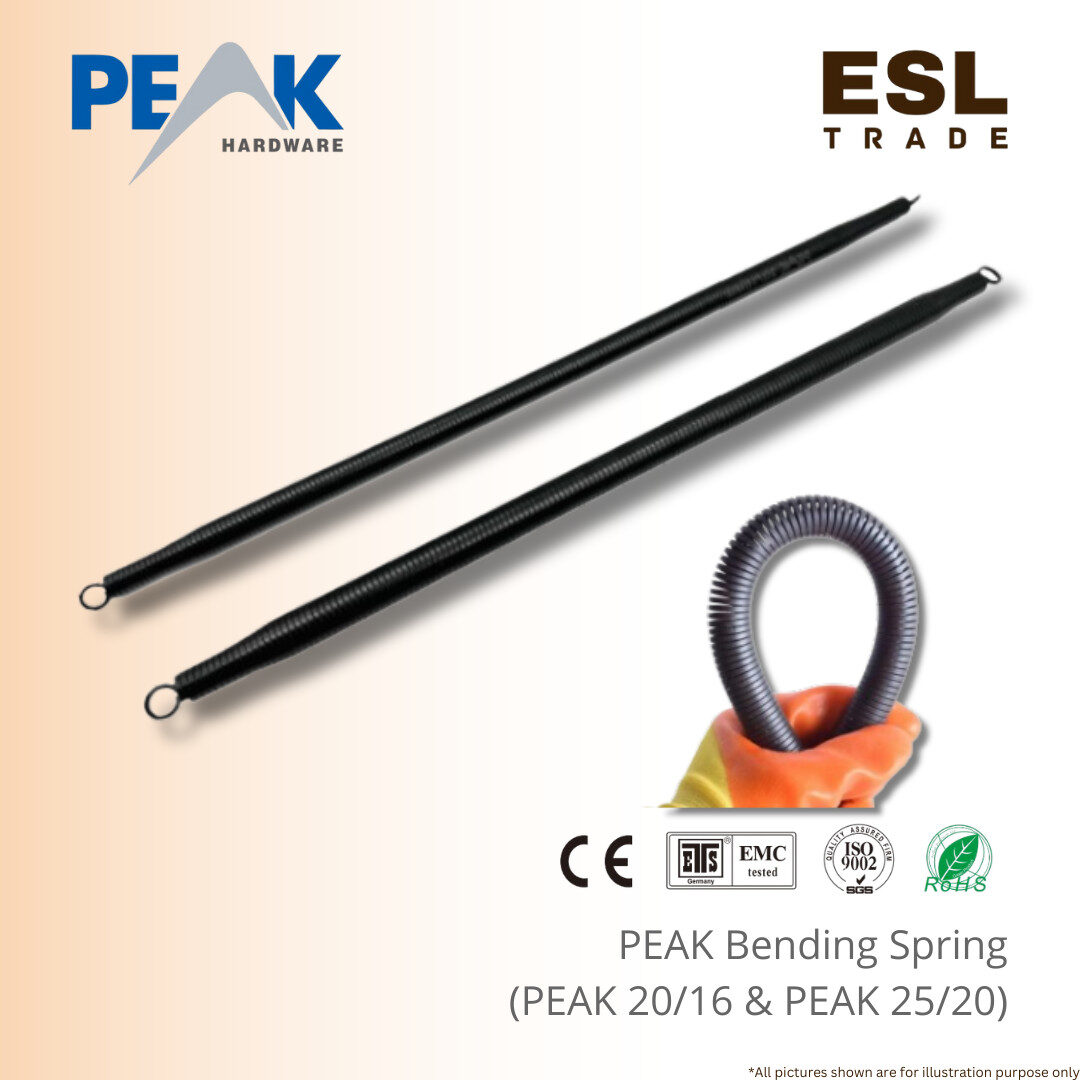 The PEAK Bending Spring is an essential and durable tool for electrical and plumbing installations. Available in 16mm (PEAK 20/16) and 20mm (PEAK 25/20) sizes, this high-quality spring ensures smooth, kink-free bends in PVC conduits, offering reliable and professional results with its standard 540mm length.