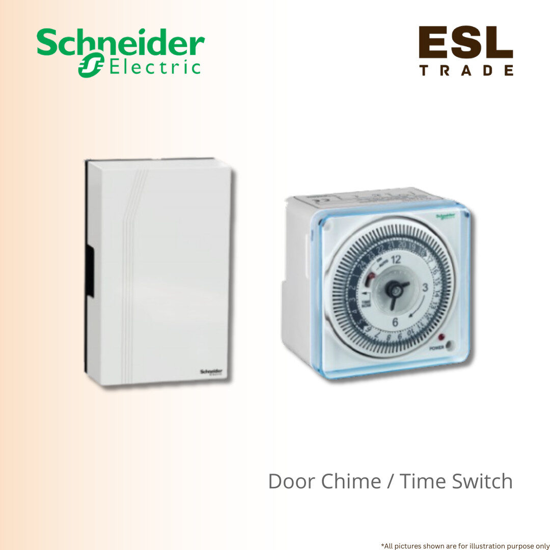 Schneider Door Chime (CCT99AC) & 24H Mechanical Time Switch (CCT15101) combo for home security & automation. Classic ding dong bell & timer with reserve.