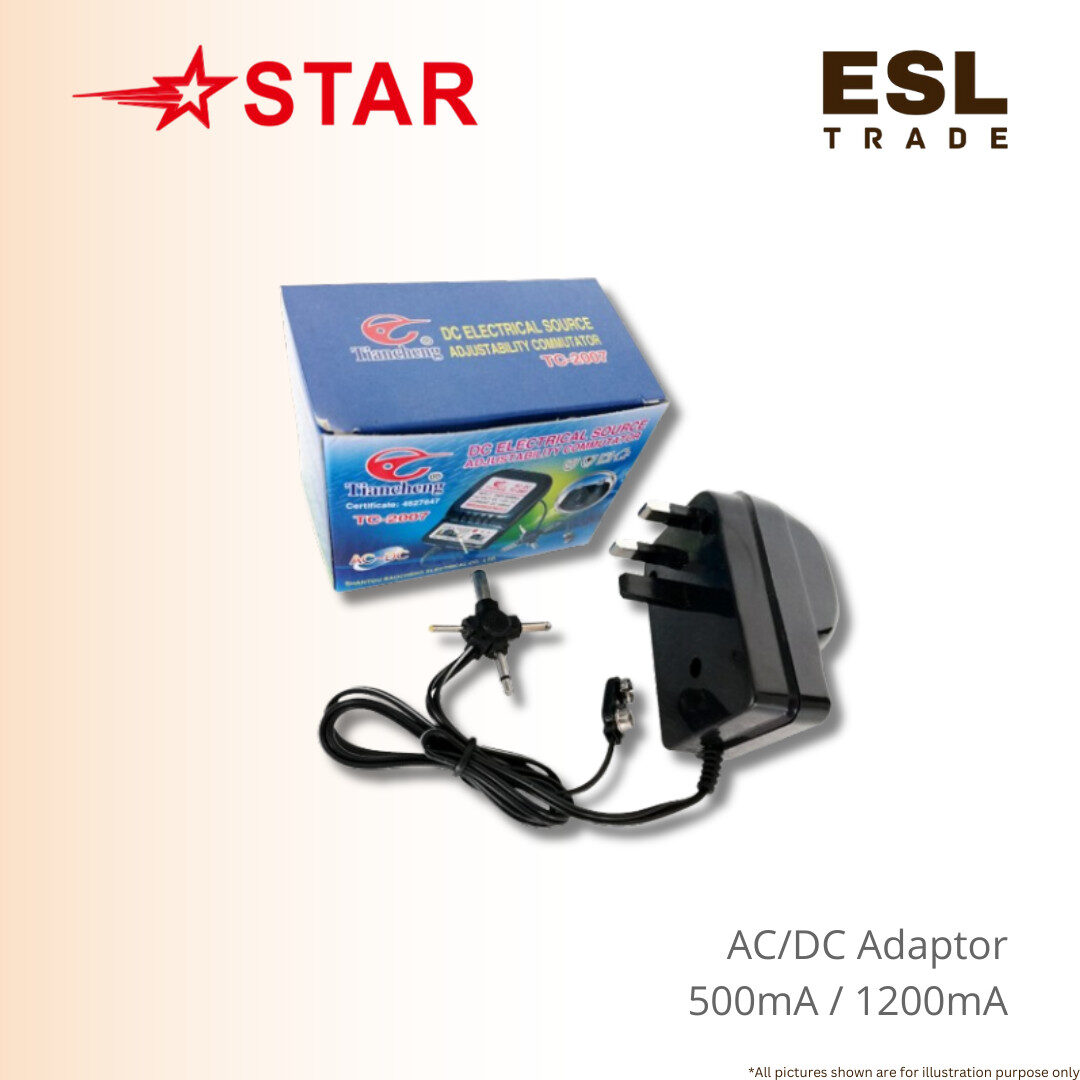 STAR AC DC Adapter 500mA/1200mA with Polarity Switch