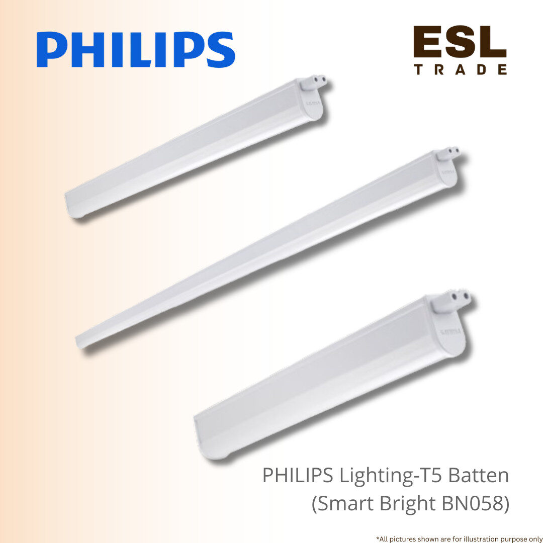 The Philips BN058 LED T5 Batten Light offers a contemporary, energy-efficient upgrade for traditional T5 fluorescent fixtures in a sleek, slim profile.
