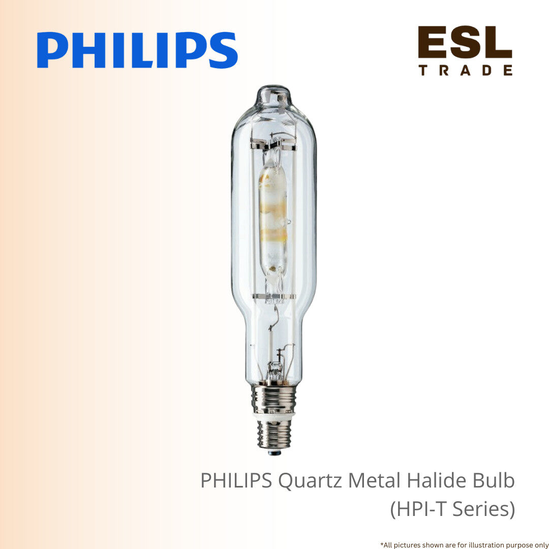 PHILIPS HPI-T Bulb E 40 High Wattage: Clear Tubular Quartz Metal Halide Lamp for High-Power Excellent for Sports & Area Floodlighting