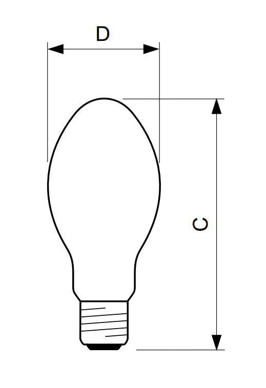 - Ovoid, internally white coated outer bulb