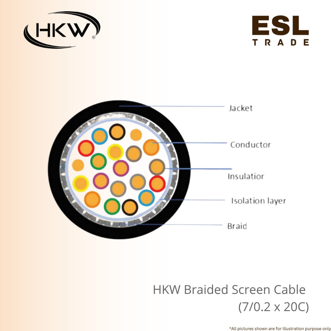 HKW Braided Screen Cable Control Flexible Tinned Copper 20 Core, Excellent PVC Jacket, 300V (7/0.2 Series)