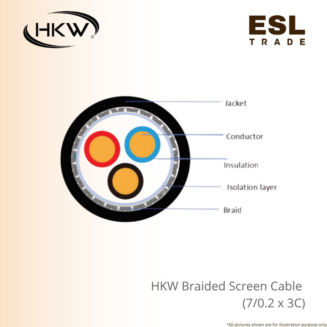 HKW Braided Screen Cable Control Flexible Tinned Copper 3 Core, Excellent PVC Jacket, 300V (7/0.2 Series)