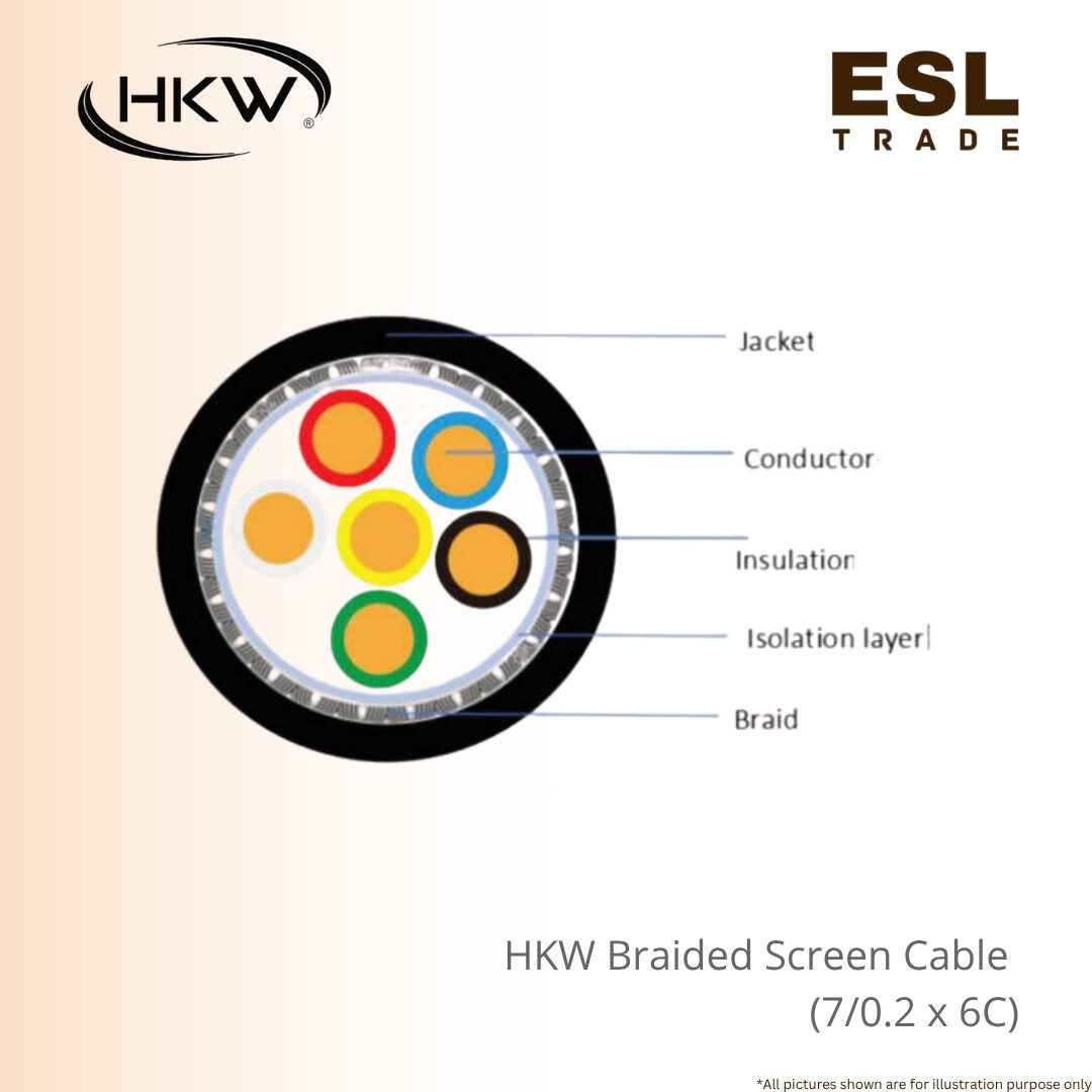HKW Braided Screen Cable Control Flexible Tinned Copper 6 Core, Excellent PVC Jacket, 300V (7/0.2 Series)