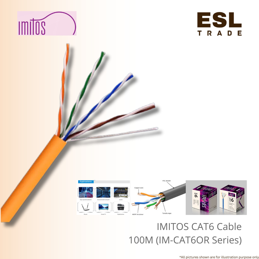 The IMITOS IM-CAT6 OR is a premium-grade Category 6 (Cat6) Unshielded Twisted Pair (UTP) cable designed to meet the rigorous demands of modern high-speed data environments.