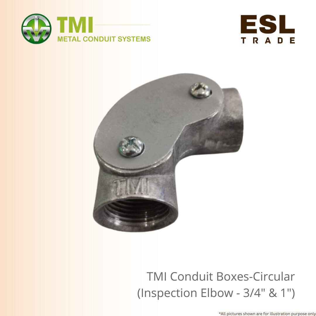 The TMI Inspection Elbow is available in standard imperial thread sizes of 3/4-inch and 1-inch (20mm and 25mm metric equivalents), ensuring full compatibility with standard TMI conduit pipes manufactured to BS and MS Standards.