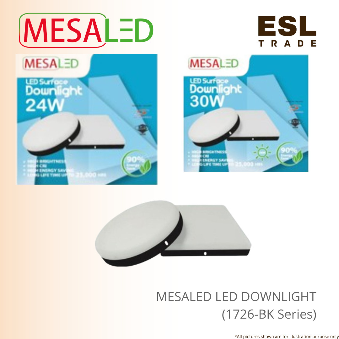 MESALED SIRIM Approved LED Surface Downlight (Black) 24W/38W Round & Square Ceiling Light – High Brightness PC Material Indoor Fixture