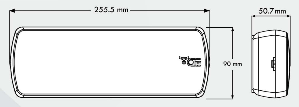 For maintenance peace of mind, the unit includes a red LED charging indicator and a Push Test-Switch to simulate power failure for routine safety checks.
