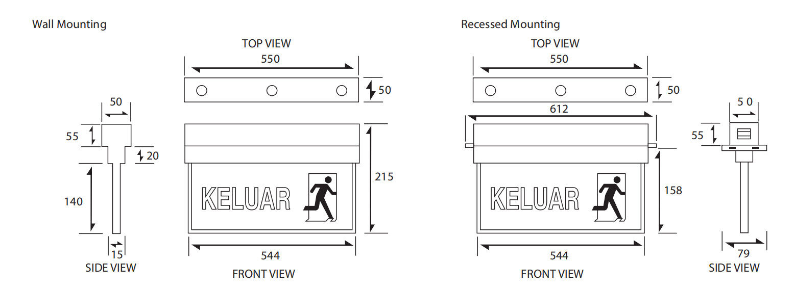 The Econlite Emergency Keluar Sign LE-215 series provides a sophisticated and reliable fire safety solution with its slimline design and elegant look.