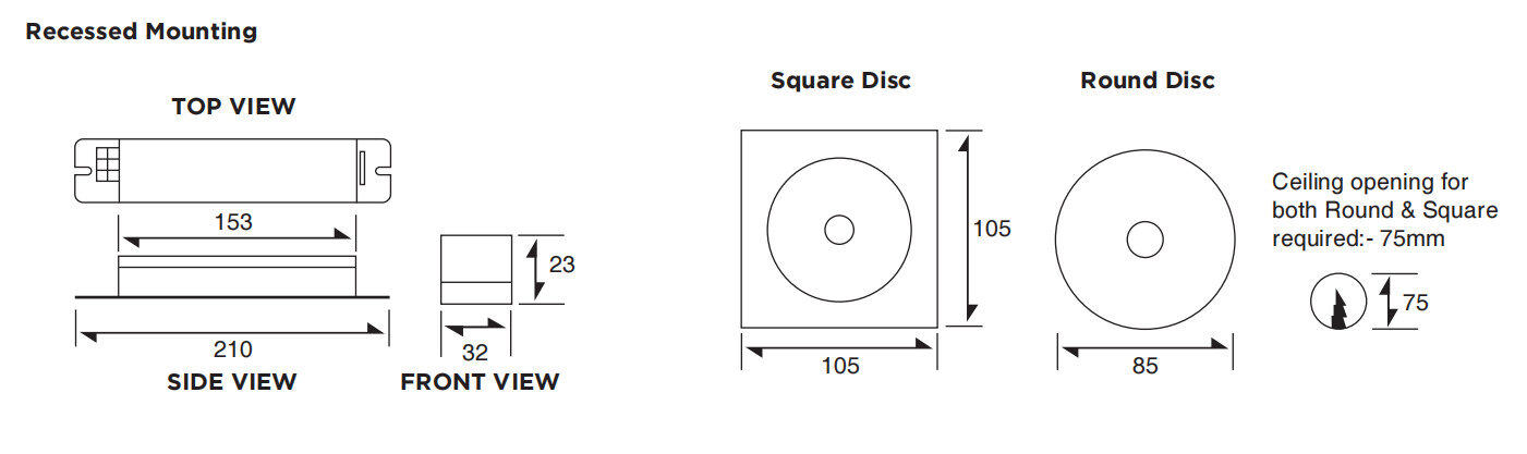 • Versatile Mounting: Recessed mounting suitable for both Round and Square disc finishes
