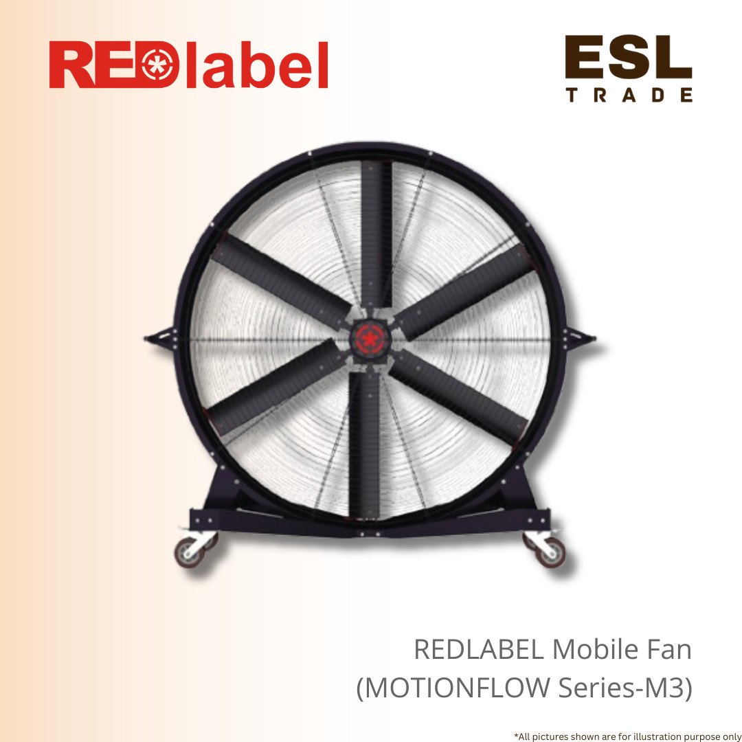 The REDlabel MOTIONFLOW M3 mobile fan is an ingeniously crafted 3ft (1m) industrial mobile fan designed to deliver powerful air circulation in a highly portable package.