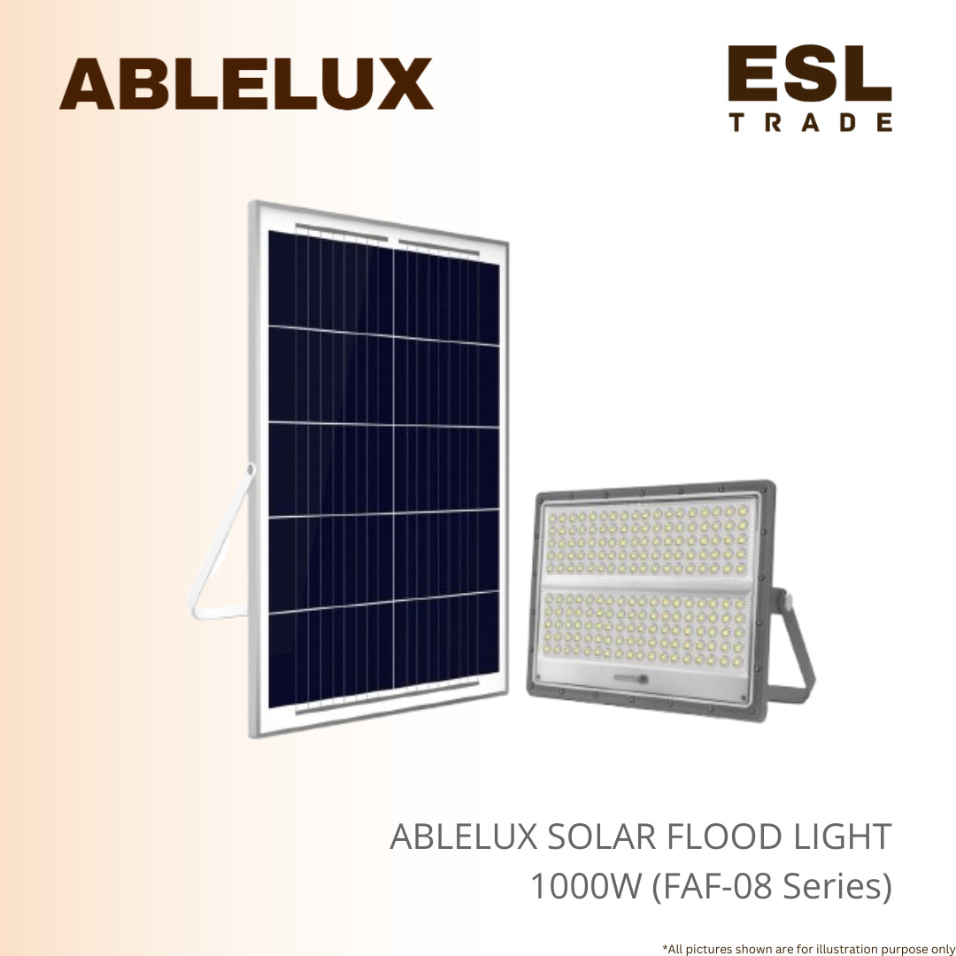 Maximize your outdoor safety and visibility with the ABLELUX 1000W Solar Flood Light, a high-performance lighting solution designed for residential, commercial, and emergency applications.