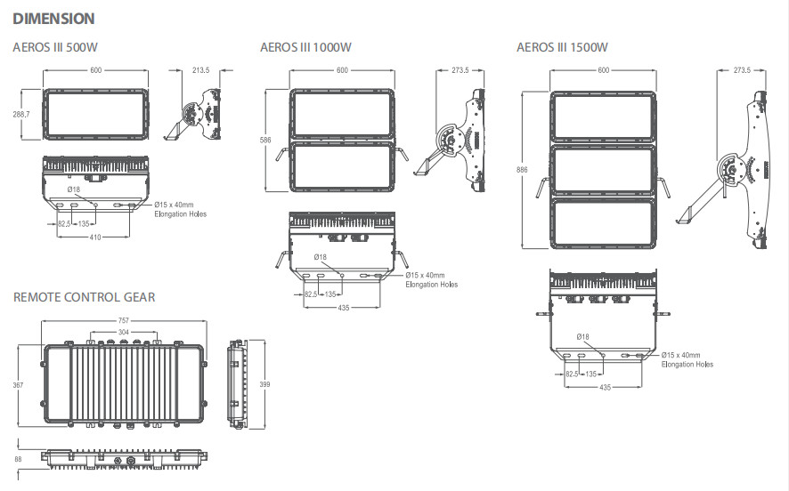 NIKKON AEROS III High-Power LED Floodlight 500W-1500W IP66 Excellent for Stadium & Sport Lighting with 100,000-Hour Life, 10KV Surge Protection, and Remote Control Gear