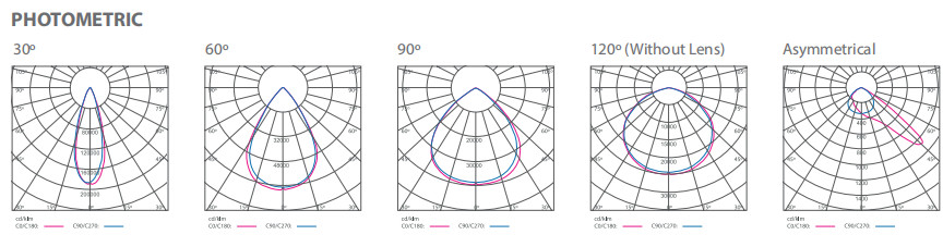 Precision Optical Control: Offers multiple beam angles including 30°, 60°, 90°, 120° (without lens), and asymmetrical options.