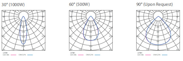 Flexible Beam Angles: Available in 30° (standard for 1000W), 60° (standard for 500W), and 90° (upon request) options.