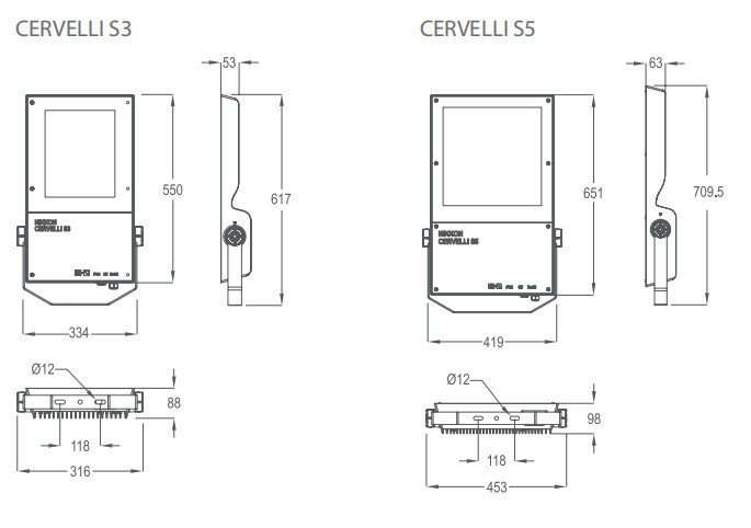 Available in two primary models the Floodlight CERVELLI S3 (100W to 300W) and the ultra-powerful Floodlight CERVELLI S5 (250W to 500W) this series delivers exceptional brightness with a system efficiency of up to 165 lm/W and a typical luminous flux reaching 76,000 lumens.