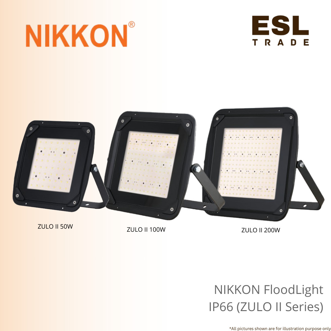 NIKKON ZULO II Industrial LED Floodlight High-Efficiency 50W-400W IP66 Excellent for Outdoor Security Light with Built-In IC Technology.