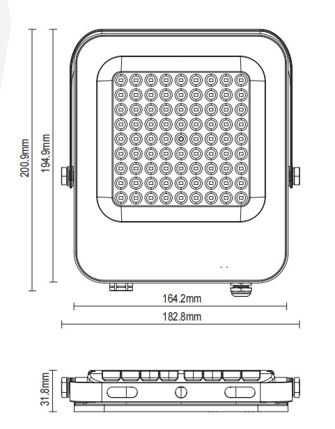 Built to withstand the rigors of outdoor environments, the LED Floodlight luminaire features an IP65 weatherproof rating, ensuring it is completely dust-tight and resistant to heavy rain and water jets.