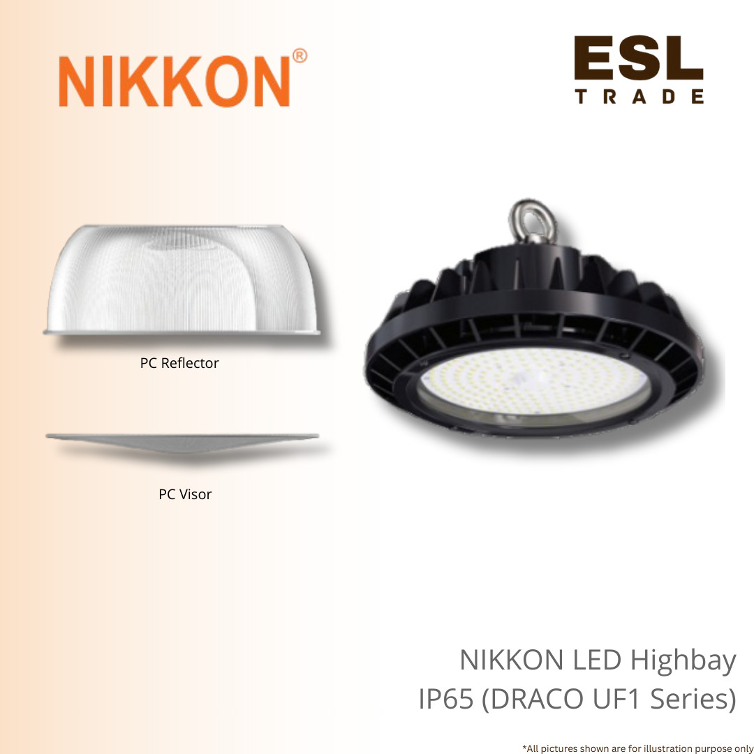 NIKKON DRACO UF1 LED Highbay 100W-200W IP65 Waterproof Excellent for Industrial Warehouse Light with 5700K Daylight and IK-Rated Impact Resistance.