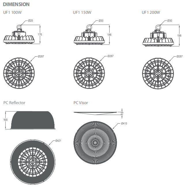 This Highbay is engineered for maximum durability, the luminaire features a non-corrosive die-cast aluminium housing finished in sleek black, paired with a 95% transparency clear tempered glass optical cover.