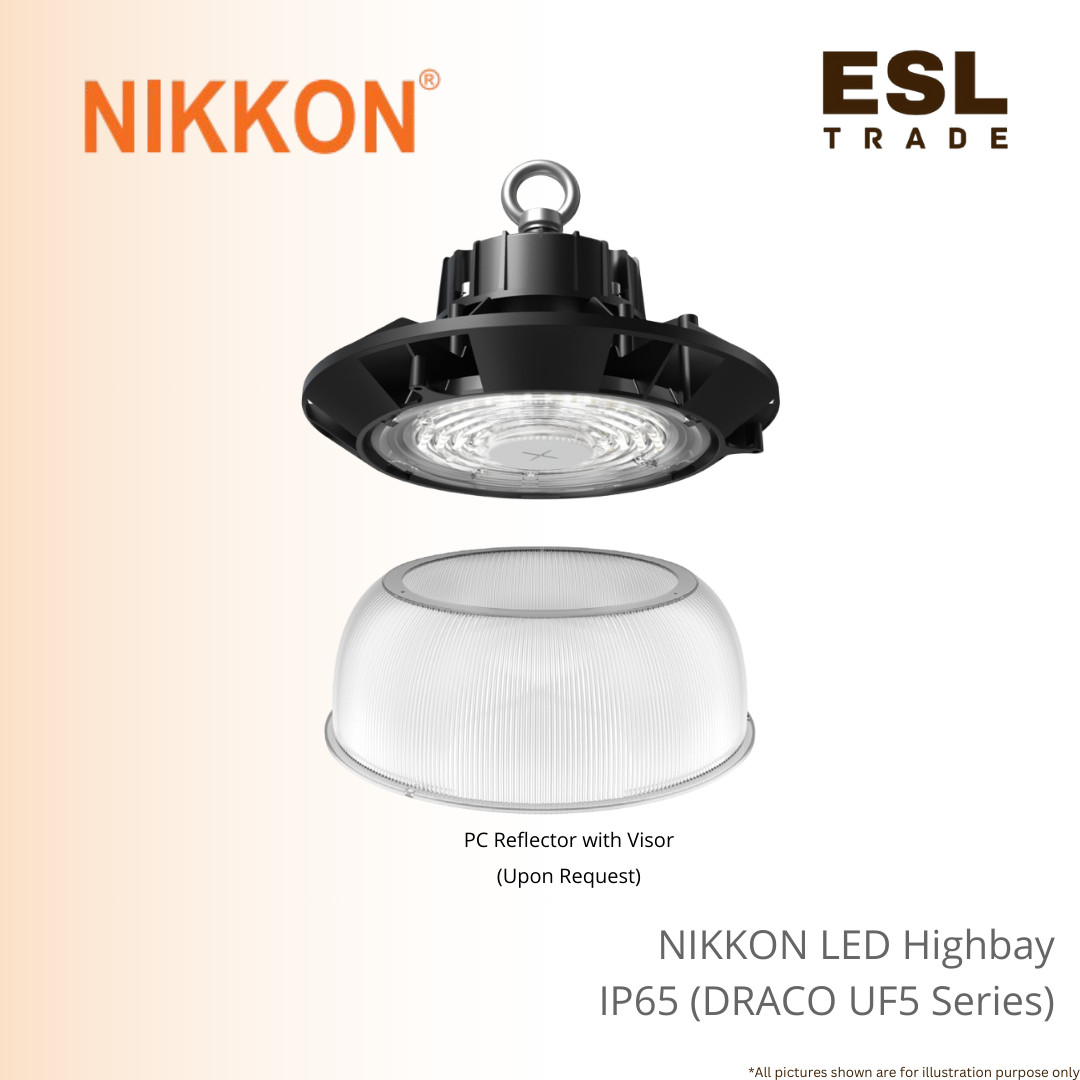 NIKKON DRACO UF5 LED Highbay 100W-200W IP65 Waterproof Excellent for Industrial Warehouse Light with 5700K Daylight Great IK-Rated Impact Resistance.
