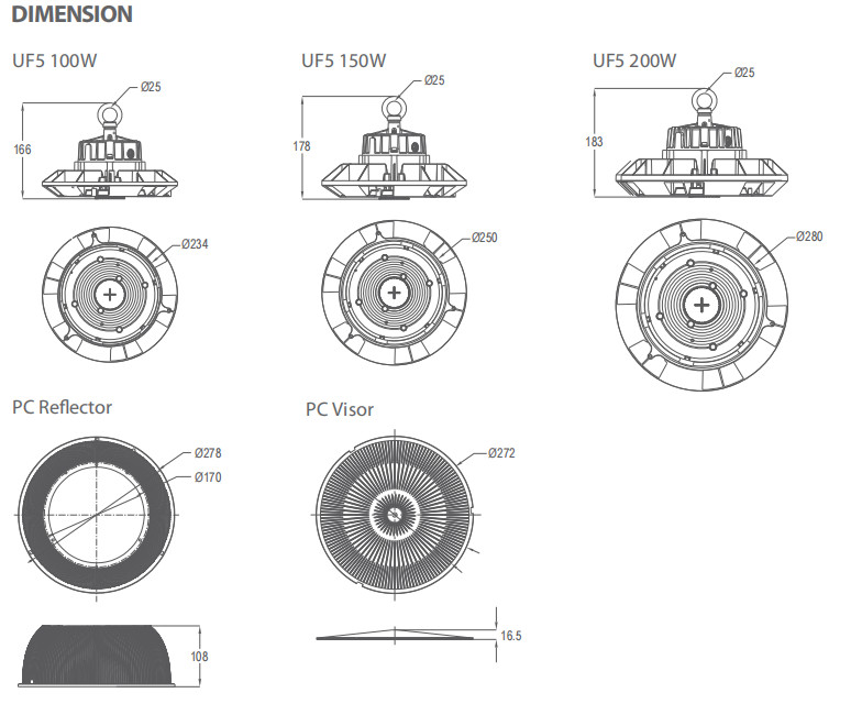This Highbay is engineered for maximum durability, the luminaire features a non-corrosive die-cast aluminium housing finished in sleek black, paired with a robust PC cover lens optic.