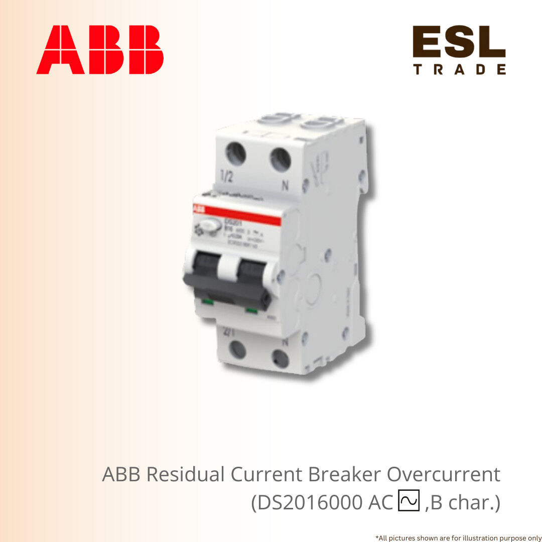 ABB Residual Current Breaker Over Current Protection (RCBO) DS201 6000 AC w type, B characteristic – Excellent Single-Pole+N Overcurrent & Earth Fault Protection