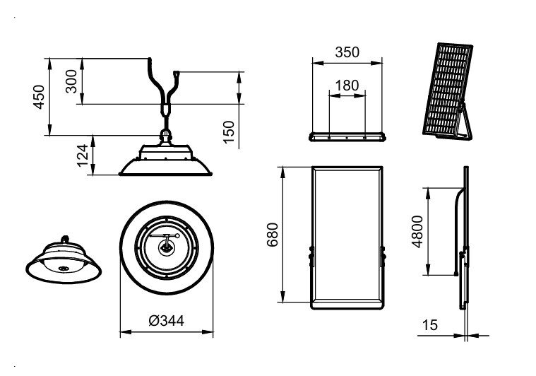 Design: All-in-one lowbay luminaire with separate PV panel (All-in-Two concept).
