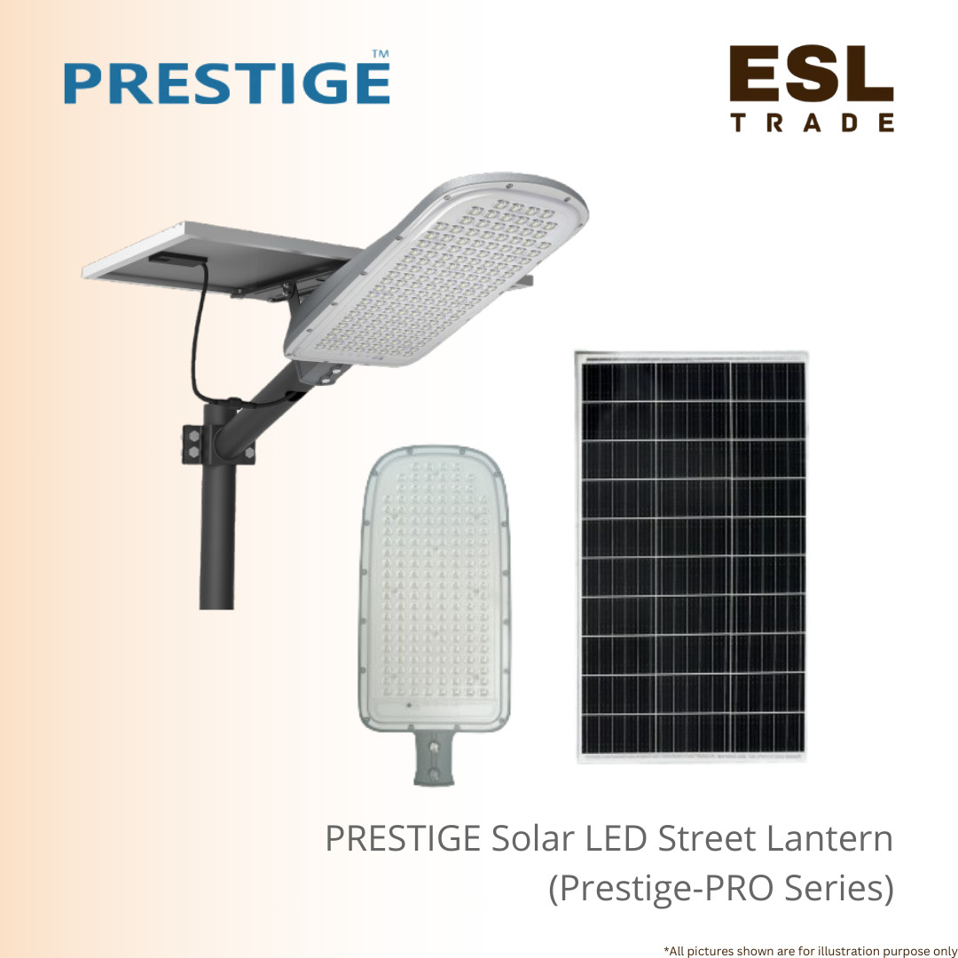 With a specialized 60 x 130° beam angle for optimized road coverage and a high CRI of over 80, the Prestige PRO Solar LED Street Lantern 1200W offers a maintenance-free, sustainable lighting experience that significantly reduces carbon emissions for any municipal or commercial project.