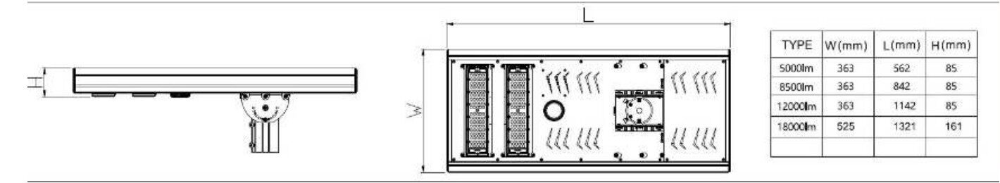 The range offers high lumen packages, reaching up to 18000 Lumens, making it one of the most powerful AIO solar streetlights available.