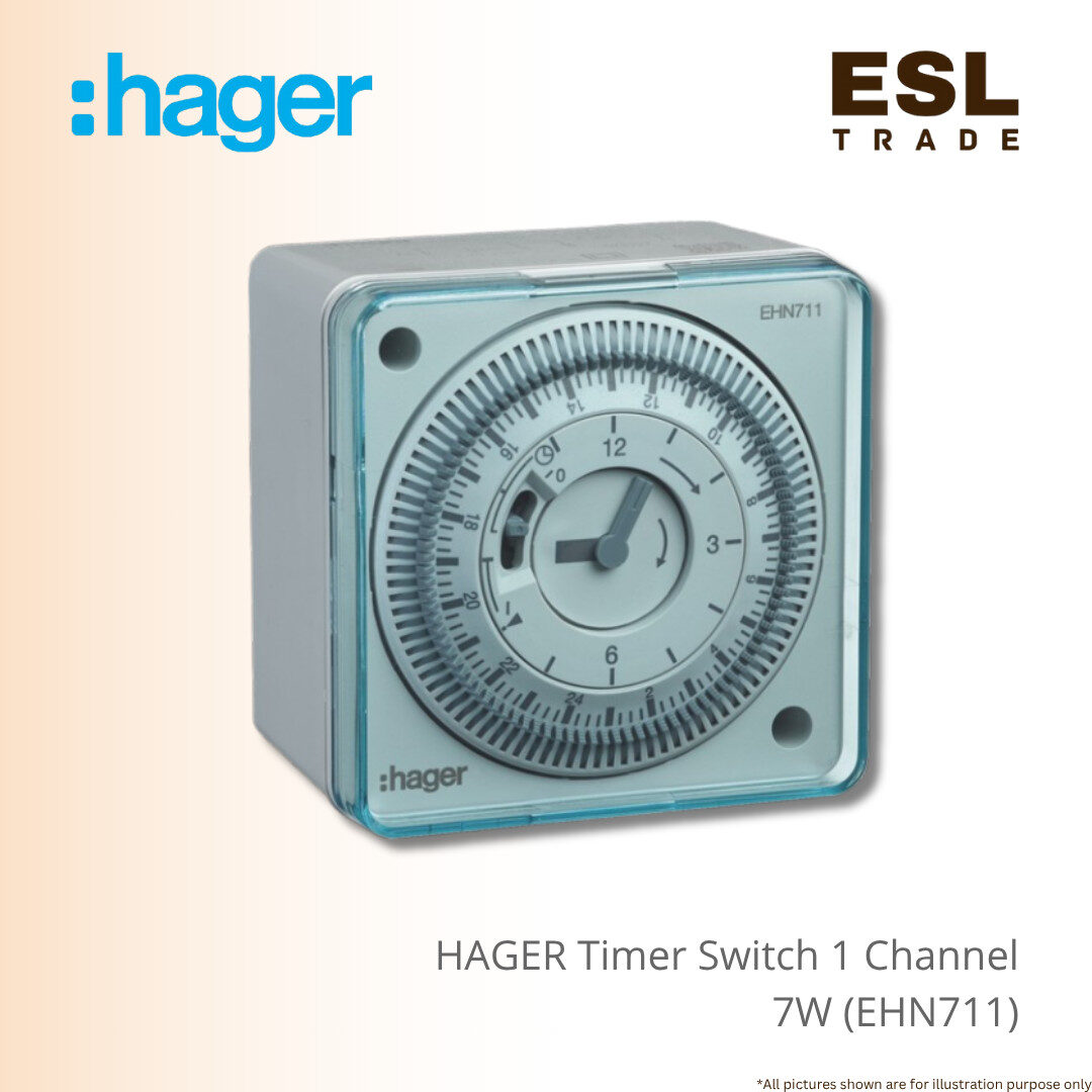 Automate your lighting and appliances with the reliable Hager EHN711 Daily Analog Time Switch, a high-performance 1-channel timer designed for energy efficiency and ultimate convenience.