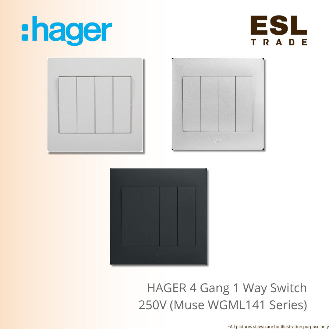 The Hager Switched Muse 16AX 4 Gang 1 Way Light (Model WGML141 Series) is the essential choice for multi-light control in modern homes and offices.