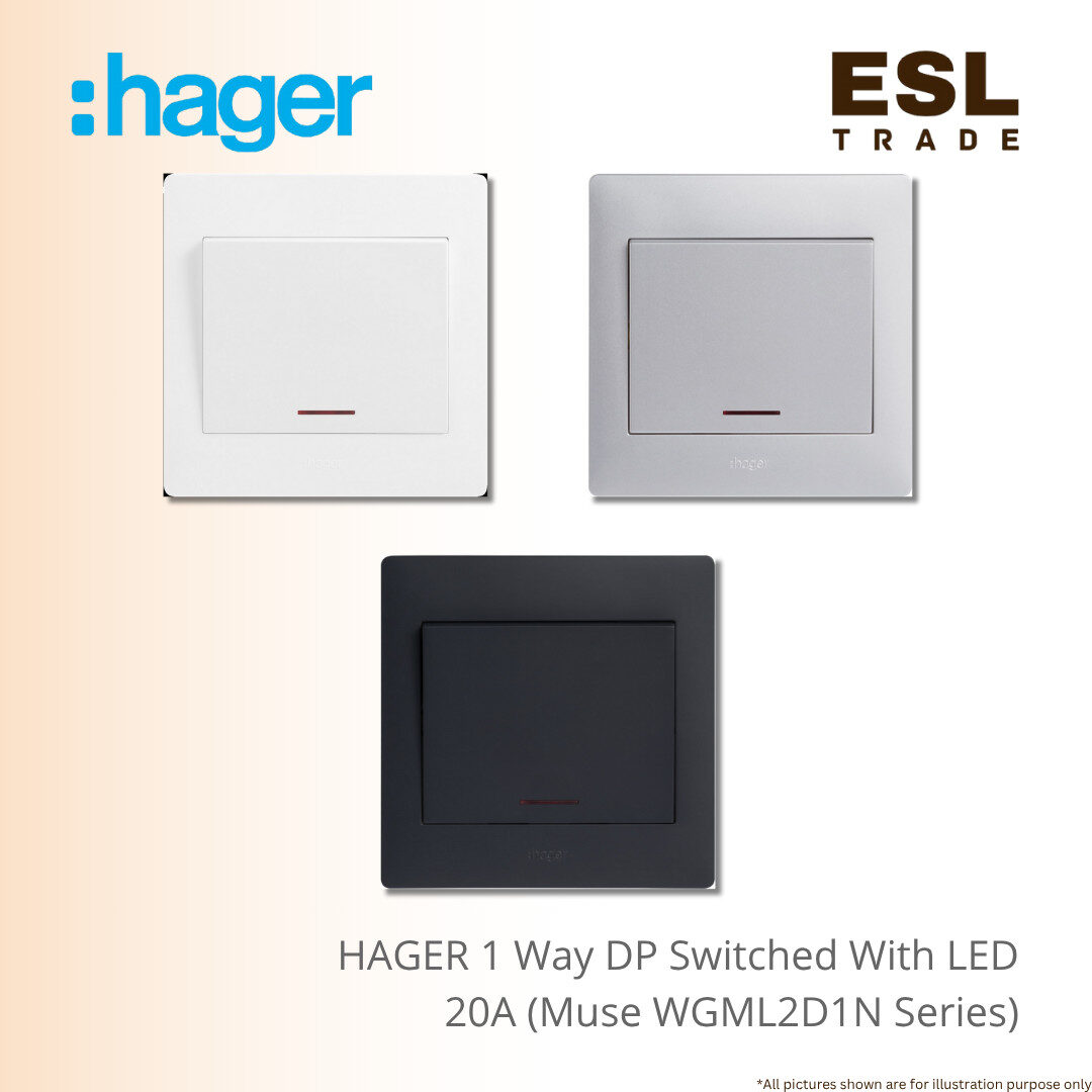 HAGER Switched 1 Gang Double Pole with LED WGML2D1N MUSE Series Excellent Appliance Switch