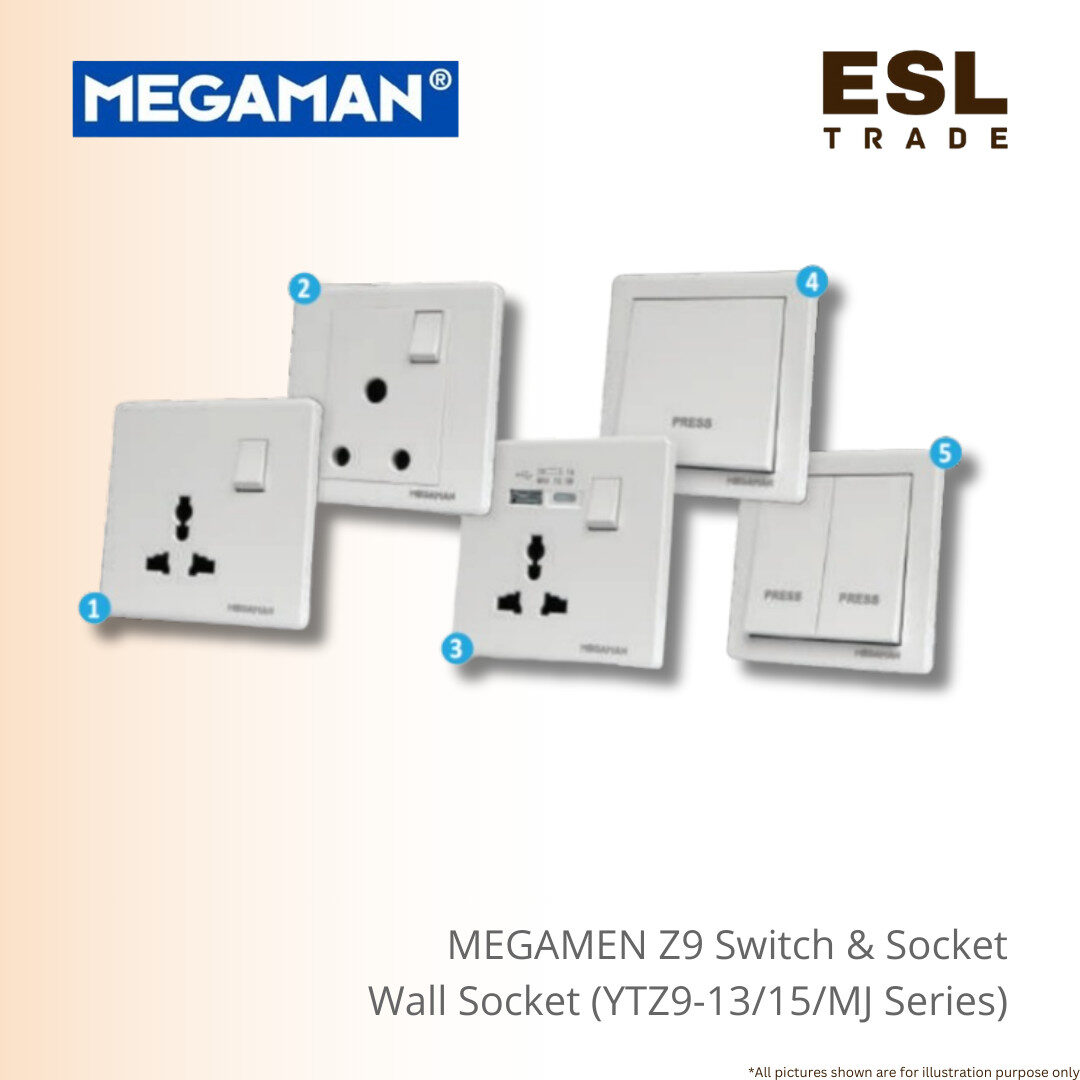 MEGAMAN® Z9 Series Universal Switch Socket 13A USB & Type-C Charging Port, 15A 1/2 Gang Entrance Guard Switch, MS Certified Excellent for Smart Home & Office