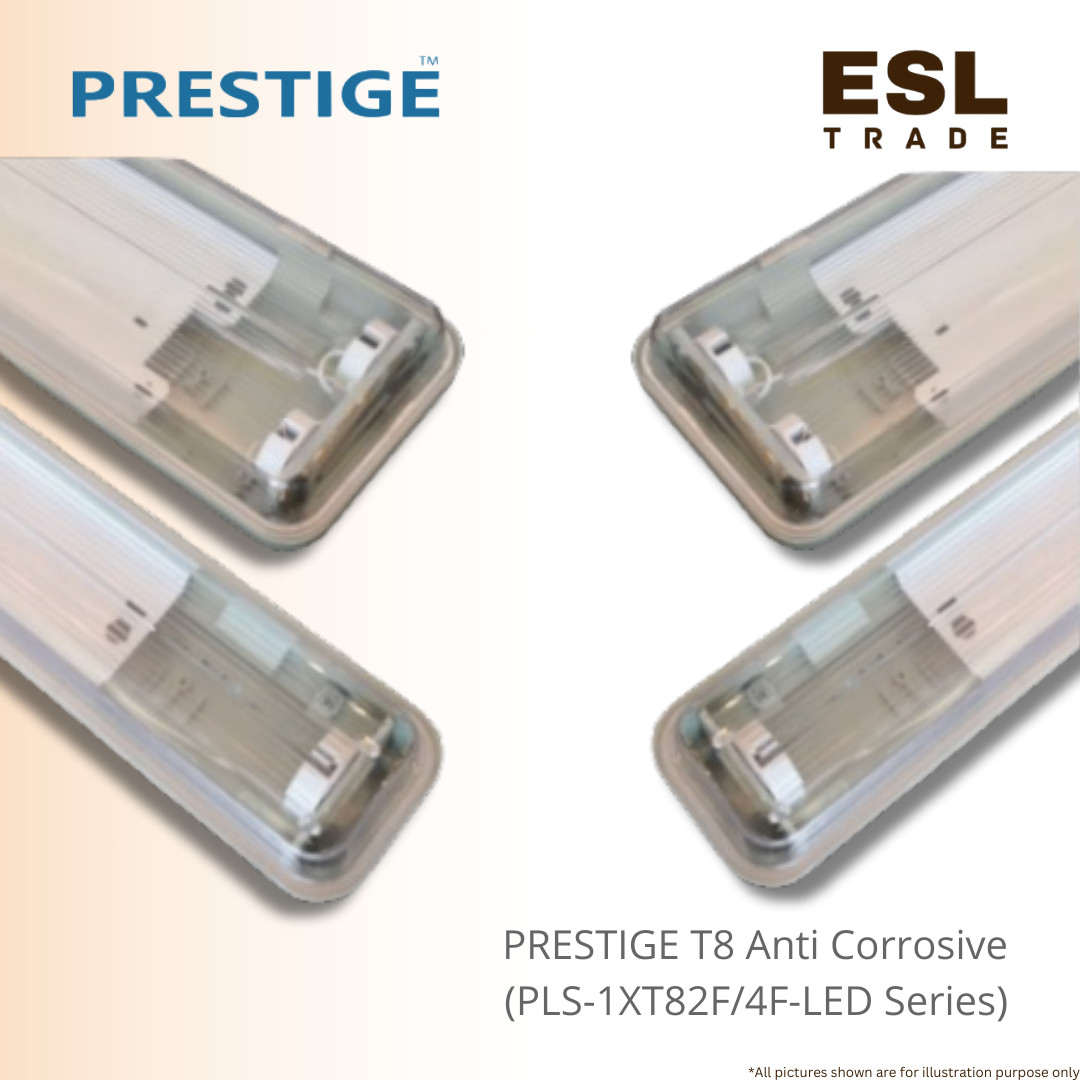 The Prestige T8 Anti-Corrosive Fitting is a professional-grade waterproof and shockproof housing designed to protect LED T8 tubes in demanding environments. Featuring a rugged polycarbonate body and diffuser secured by stainless steel clips, it is specifically built for industrial facilities, food processing plants, and outdoor use. Available in single and double tube configurations, this rust-resistant fitting ensures long-lasting durability and reliable performance across 220-240V electrical systems.