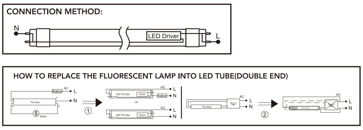 T8-60W | 60W | 6000LM | >80 | >0.5 | 1198mm | 3000K/4000K/6500K | SMD 2835 |
