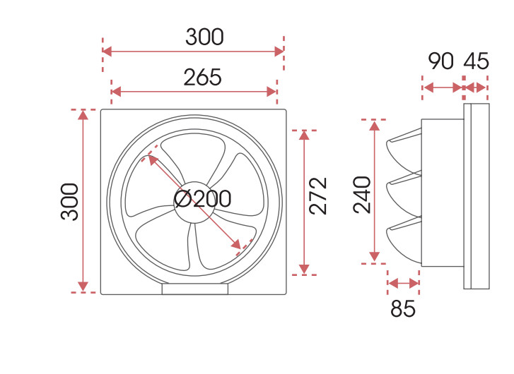 One of the standout features of this Exhaust Fan series is the P.P. (Polypropylene) material casting.